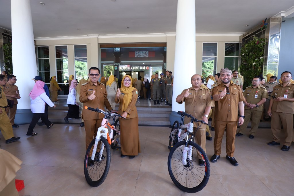Apel Pagi, Wali Kota dan Wakil Wali Kota Batu Bagi-Bagi Sepeda untuk ASN