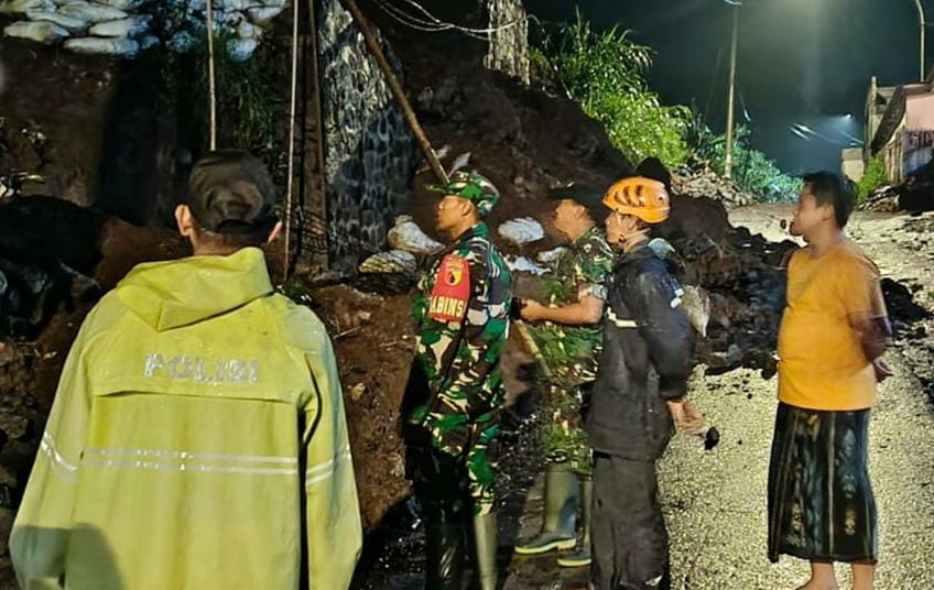 Diguyur Hujan Deras, Plengsengan di Bumiaji Ambrol dan Tutup Sebagian Badan Jalan